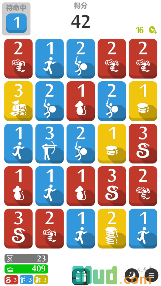 《正义召唤方块勇士》是目前唯一首创合并消除的一款富有创造性的2D方块游戏,在游戏里为你创造了无限的可能性,消灭来自四面八方怪物。提供创意的地方在于牌面上设置了三种元素:宝物(黄色)、战士(蓝色)、怪物(红色),游戏中玩家需要将相同颜色的方块进行滑动叠加,而一定数目的战士颜色方块可以收集相同或更小数目的宝物颜方块,并取得一定的分数,前面吃掉的数目越高分数也越高,但想要玩出很高的分数还是要耗费不少脑细胞的,开动脑筋打发时间也是不错的选择。是骆是马,就看你六不六,马上来玩一玩吧。