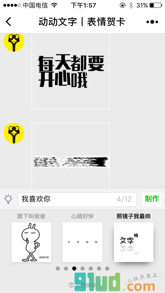 - 在微信中搜索“动动文字I表情贺卡”即可进入小程序