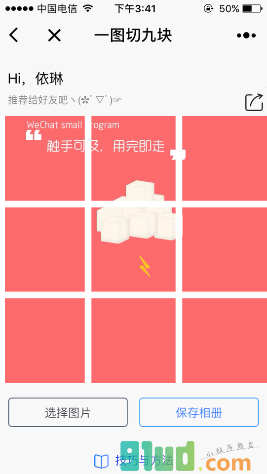 九宫格能把一张图片切割成九个方块,支持拖动缩放高清保存,发朋友圈十分好看、逼格爆表。