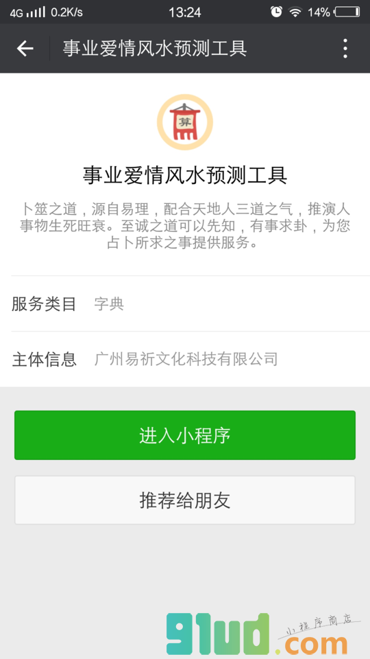 - 在微信中搜索“事业爱情风水预测工具”即可进入小程序