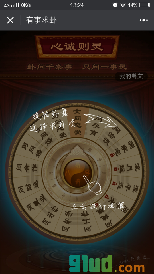 事业爱情风水预测工具微信小游戏使用方法: