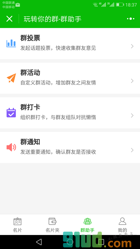 - 在微信中搜索“玩转我的群”即可进入小程序