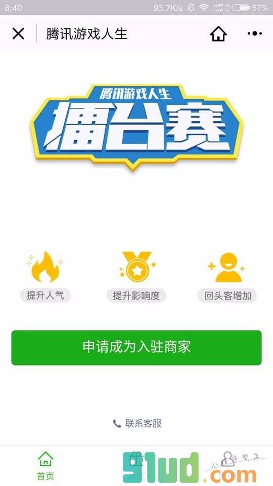- 在微信中搜索“腾讯游戏人生商家版”即可进入小程序