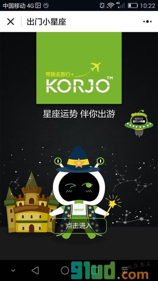 - 使用微信扫描页面上方二维码进入KORJO出门小星座