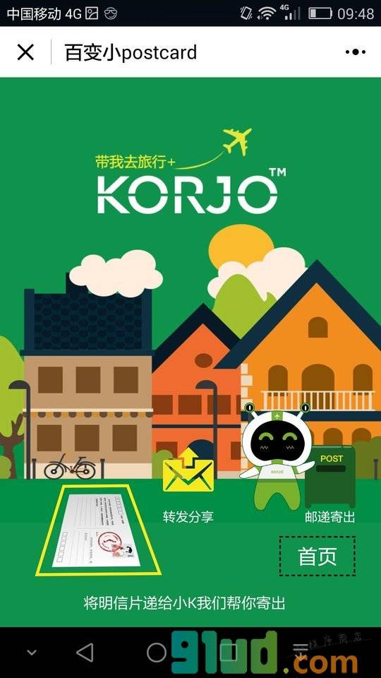 - 使用微信扫描页面上方二维码进入KORJO百变小Postcard