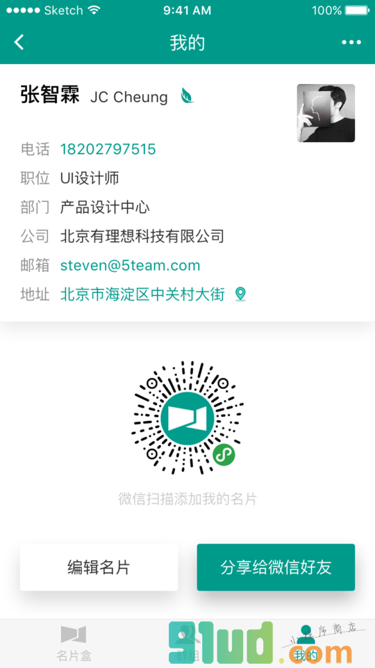 - 使用微信扫描页面上方二维码进入印象名片