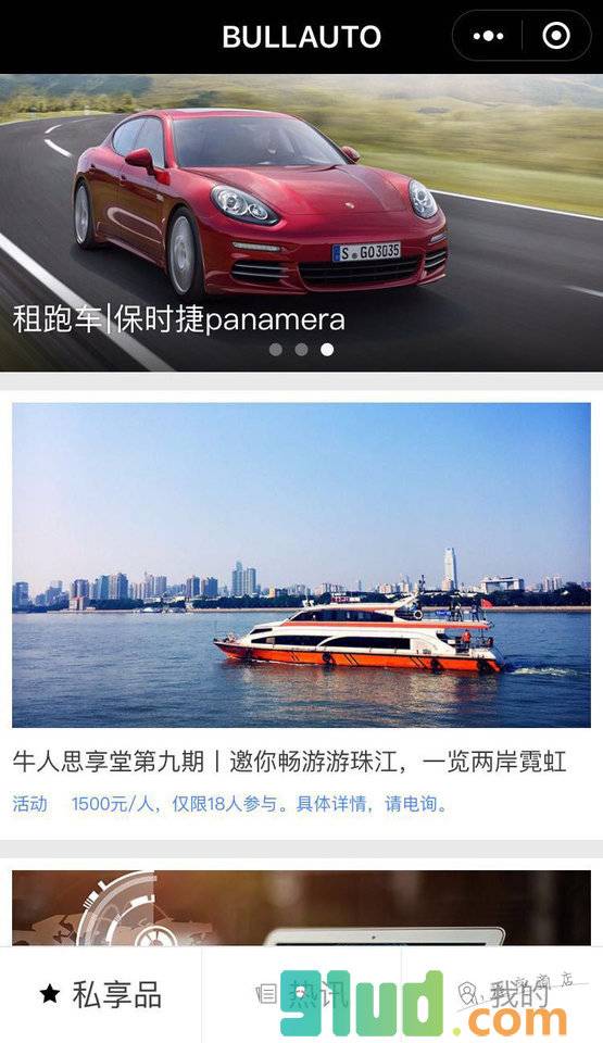 BULLAUTO+作为轻量级的高端座驾资讯服务应用工具,是国内第一家整合轻奢消费生活服务的社交利器。为高净值人群提供圈子人脉快速链接的社交平台,汇聚品质化的名品座驾工具分享与圈层生活派对活动报名,专注飞机、游艇、豪车等资讯信息流推送。官方独家运营的牛人思享堂,为行业精英、高管、创始人、投融VC等人士提供商业圈子社交分享。 找对圈子,找对人,加入牛人思享堂,用BULLAUTO+小程序快速开启圈子生活!