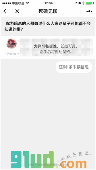 一个专注问答唠嗑的阅后即焚小程序。 有效找到共同话题,问出想问又不敢问的,找到脑路最清奇的朋友。 不仅消除无聊,还能让你跟别人更有聊。