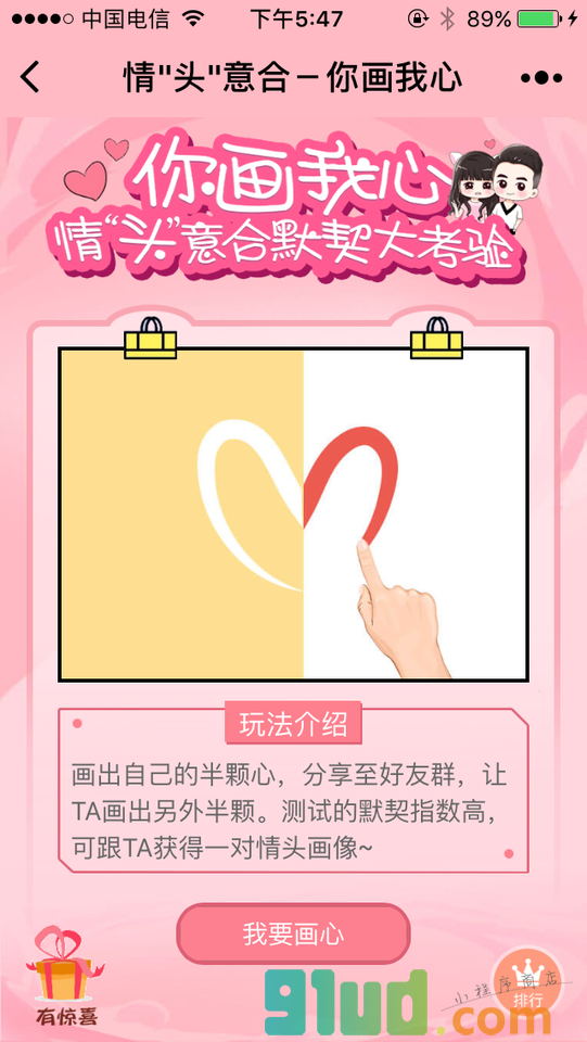 单身狗的新玩法——画下自己的半颗心,看谁能准确画出你的另外半颗星!匹配度达到情侣级别,官方还会送你一对你跟TA的情侣头像~手绘的头像哦~