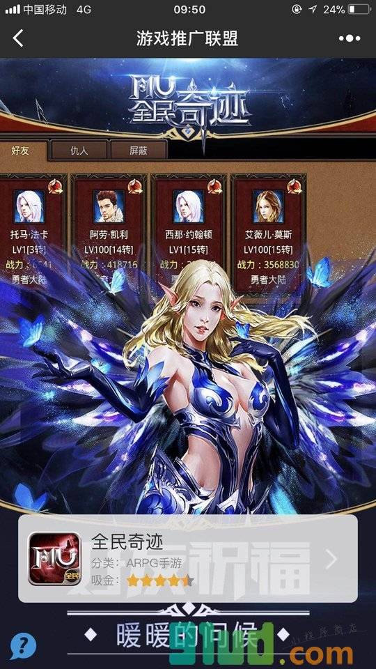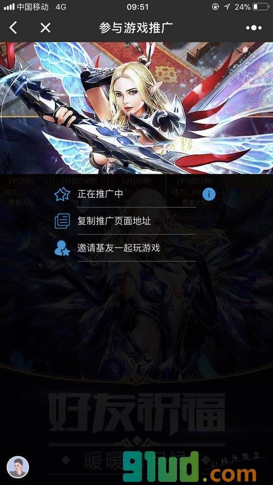 - 使用微信扫描页面上方二维码进入游戏推广联盟