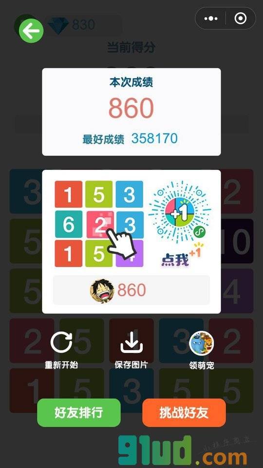 休闲小游戏。点击小方块,使上面的数字加一,三个或更多相同的数字连接到一起就能得分~