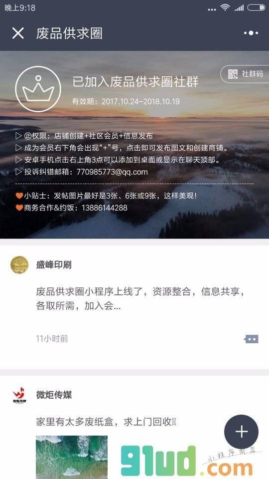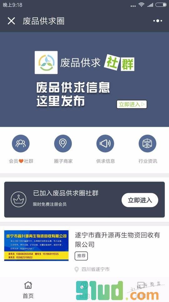 - 使用微信扫描页面上方二维码进入废品供求圈