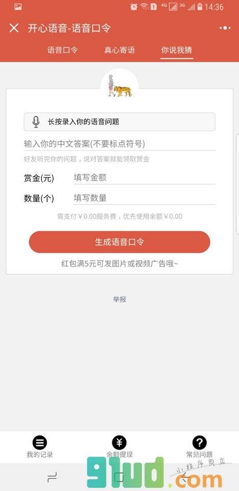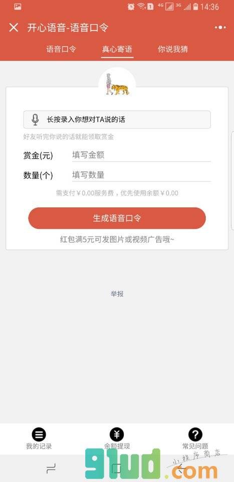 开心语音,一款超好玩的语音小程序。通过让好友读出您发布的文字来活动您发的红包,可生成单独分享页面二维码。红包大于5元可以发图片或视频广告哦~