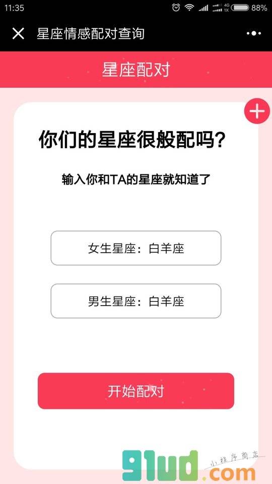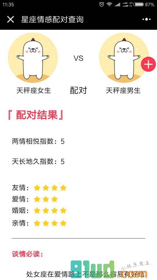 - 在微信中搜索“十二星座情感配对查询”即可进入小程序