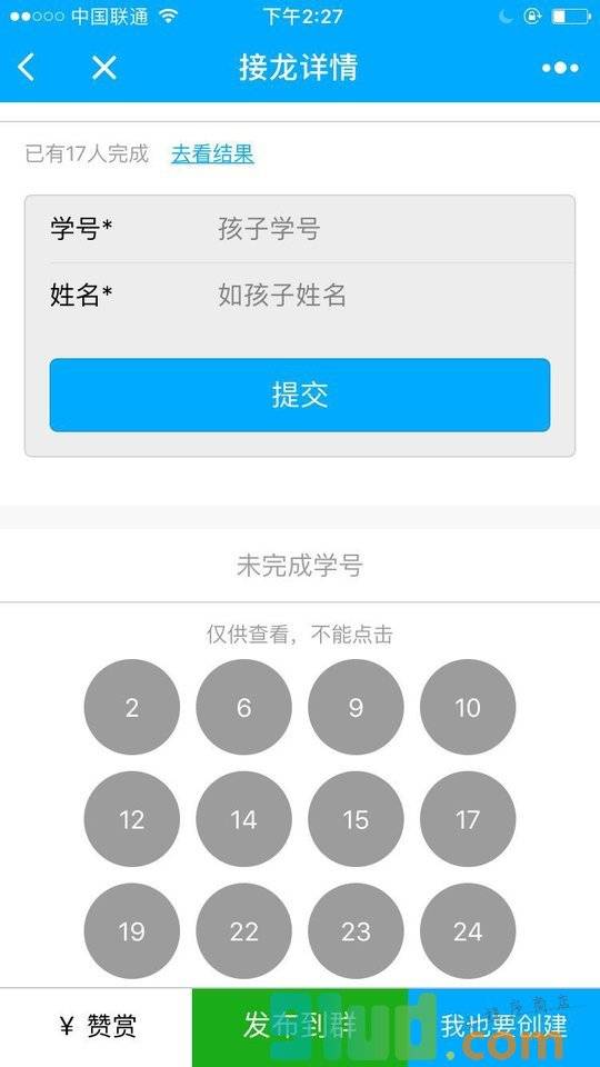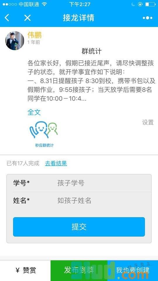 - 使用微信扫描页面上方二维码进入家校群接龙