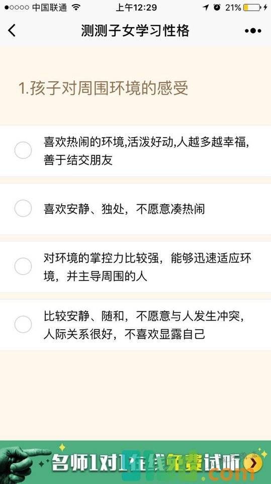 - 使用微信扫描页面上方二维码进入测测子女学习性格