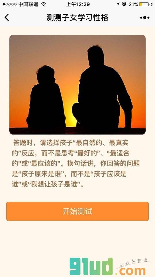 - 在微信中搜索“测测子女学习性格”即可进入小程序