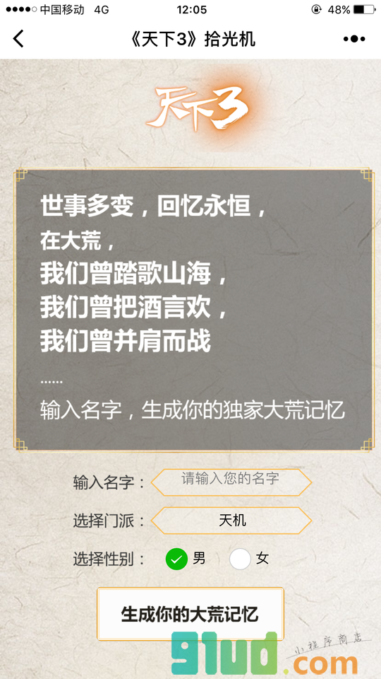 - 在微信中搜索“天下3拾光机”即可进入小程序