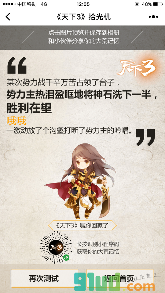 - 使用微信扫描页面上方二维码进入天下3拾光机