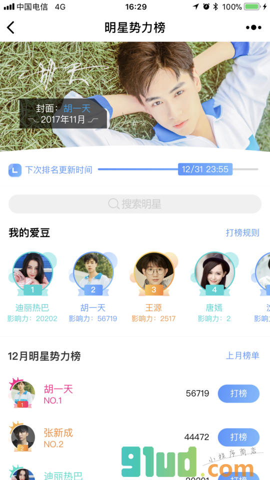- 在微信中搜索“明星势力榜”即可进入小程序