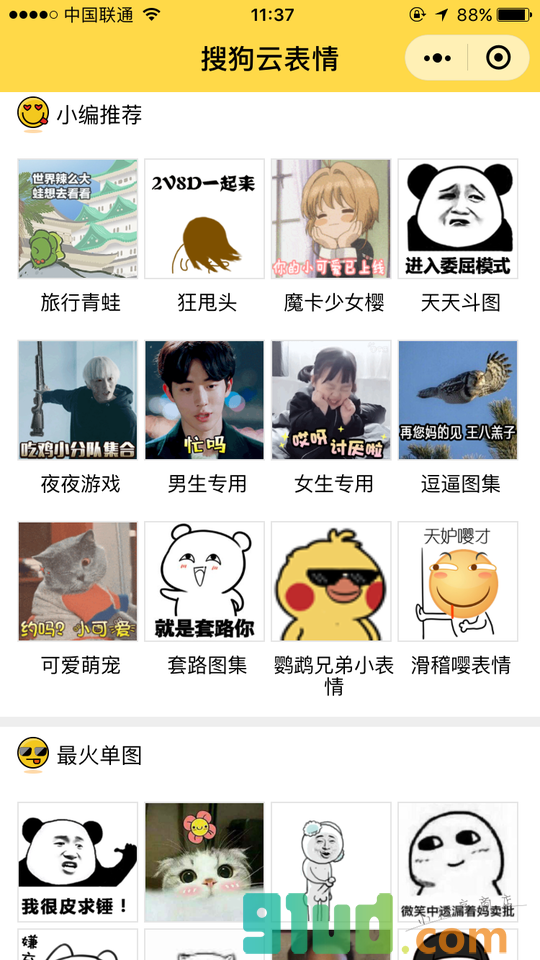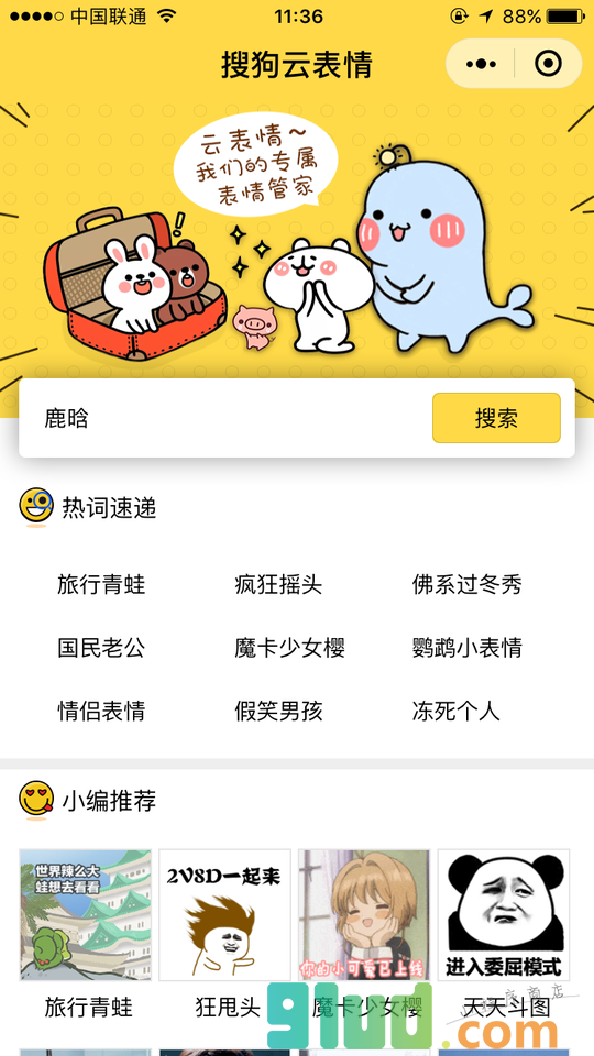 - 在微信中搜索“搜狗云表情”即可进入小程序