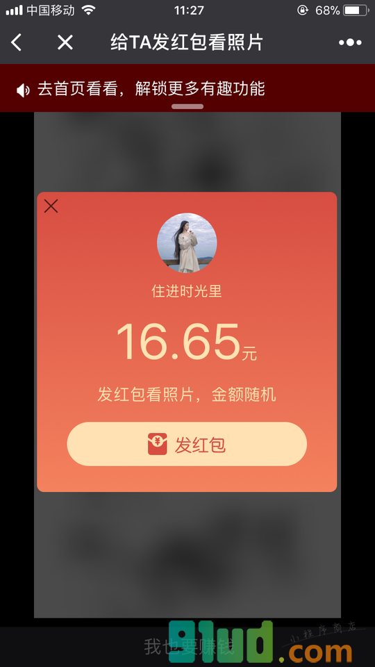制作分享红包照片、红包视频,别人给你发红包、打赏后才能观看清晰照片和视频~