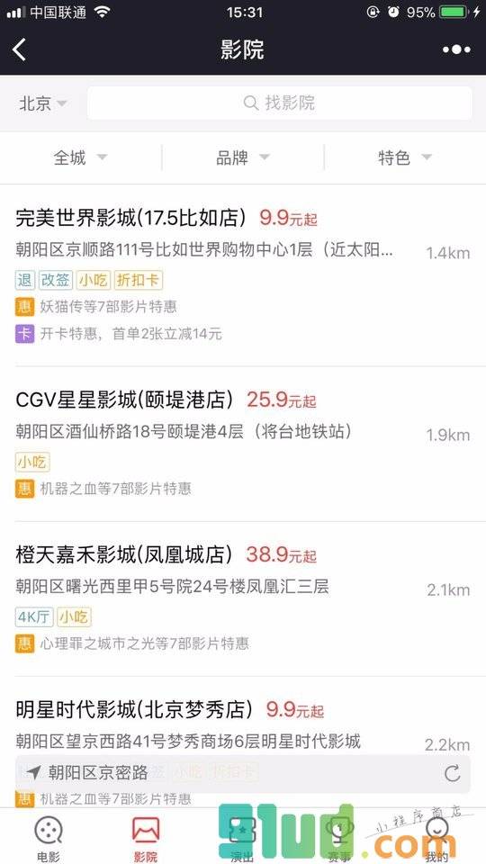- 在微信中搜索“电影演出票儿”即可进入小程序