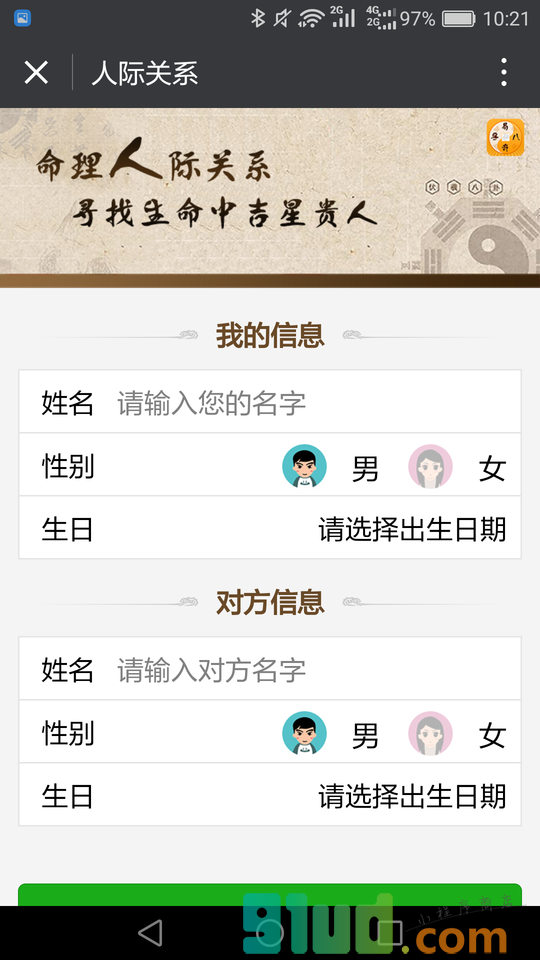 人脉交友婚恋合婚周易缘份测算微信小游戏使用方法: