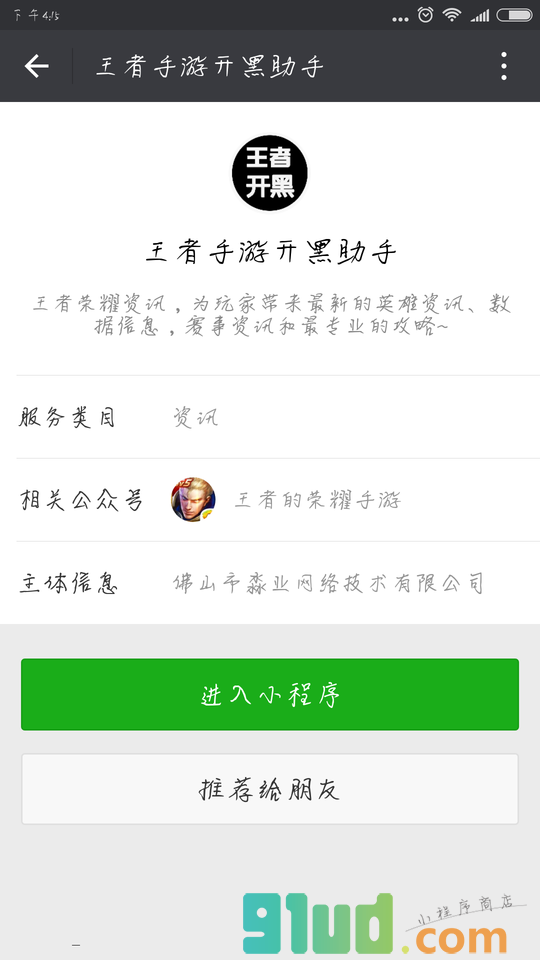 - 在微信中搜索“王者手游开黑助手”即可进入小程序