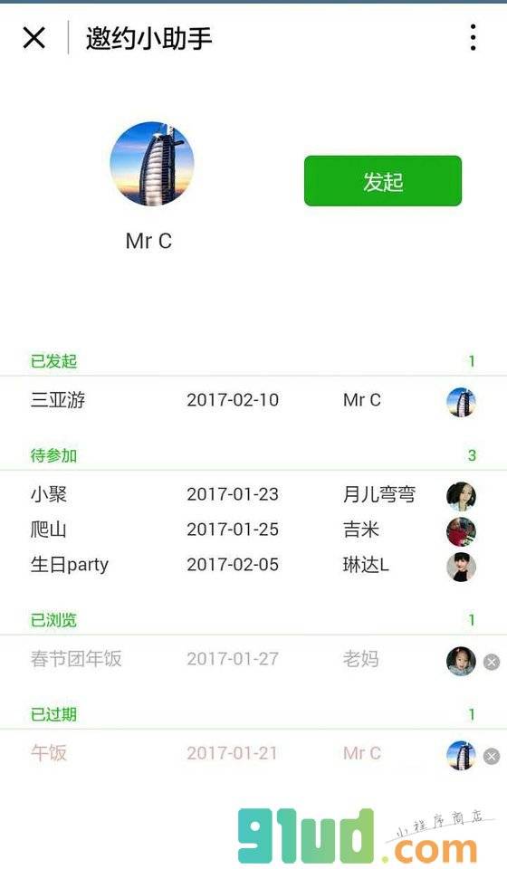 - 在微信中搜索“邀约小助手”即可进入小程序