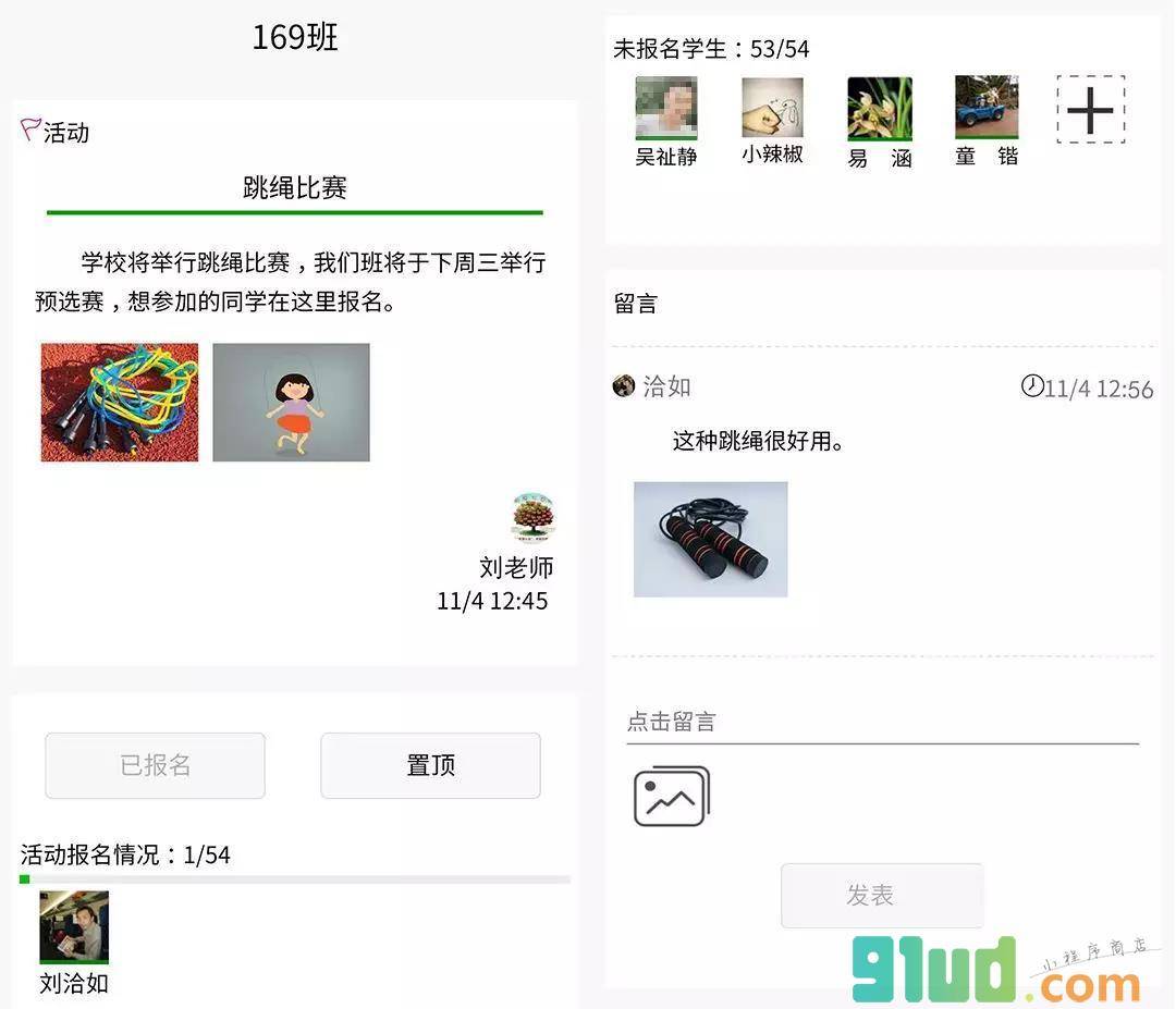 - 使用微信扫描页面上方二维码进入班级群助理