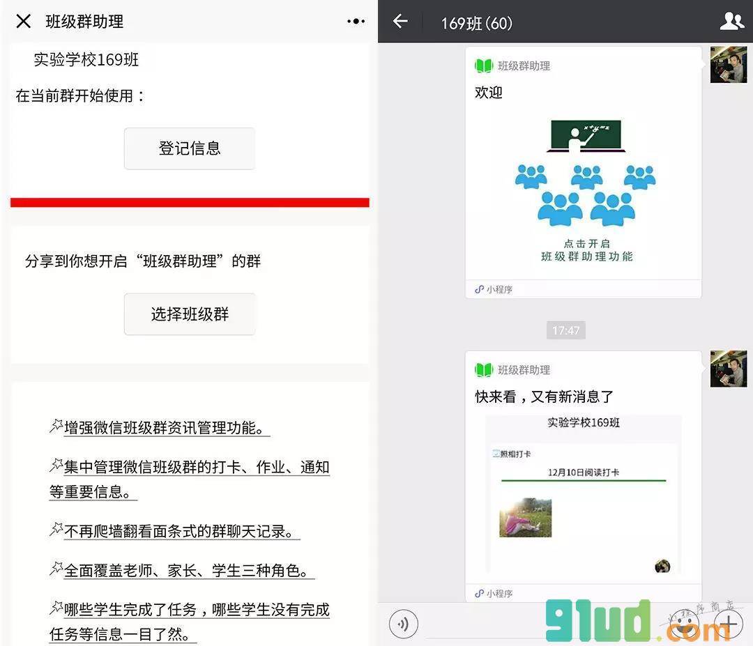 - 在微信中搜索“班级群助理”即可进入小程序