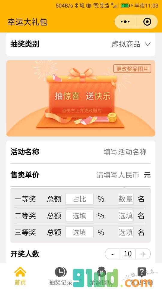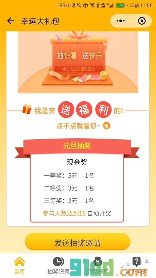 为聚会、活动、年会、庆典、企业、公众号引流等提供抽奖工具,可抽奖金,可抽实物,也可以用来一元夺宝,玩法多样,灵活。