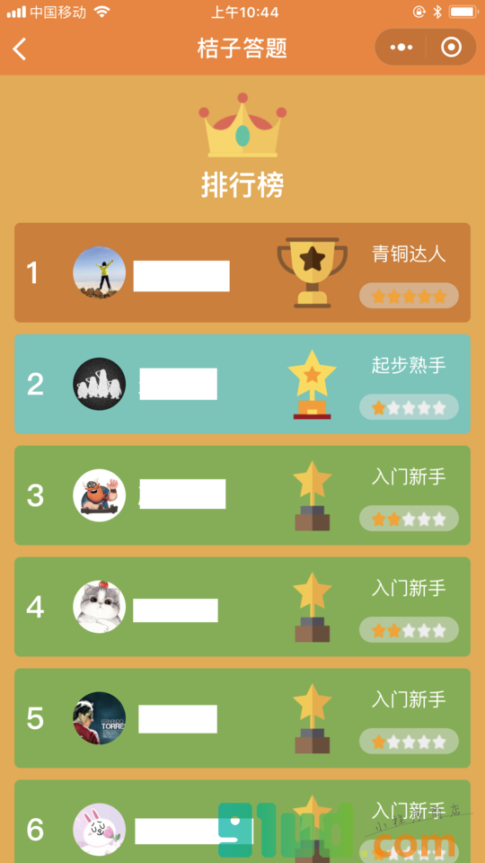 - 在微信中搜索“桔子答题”即可进入小程序