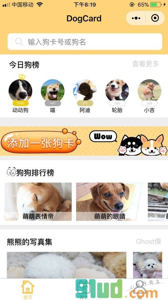 - 在微信中搜索“萌犬WoofCard+”即可进入小程序
