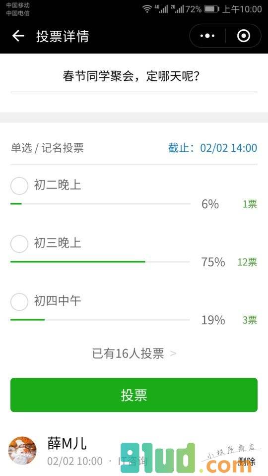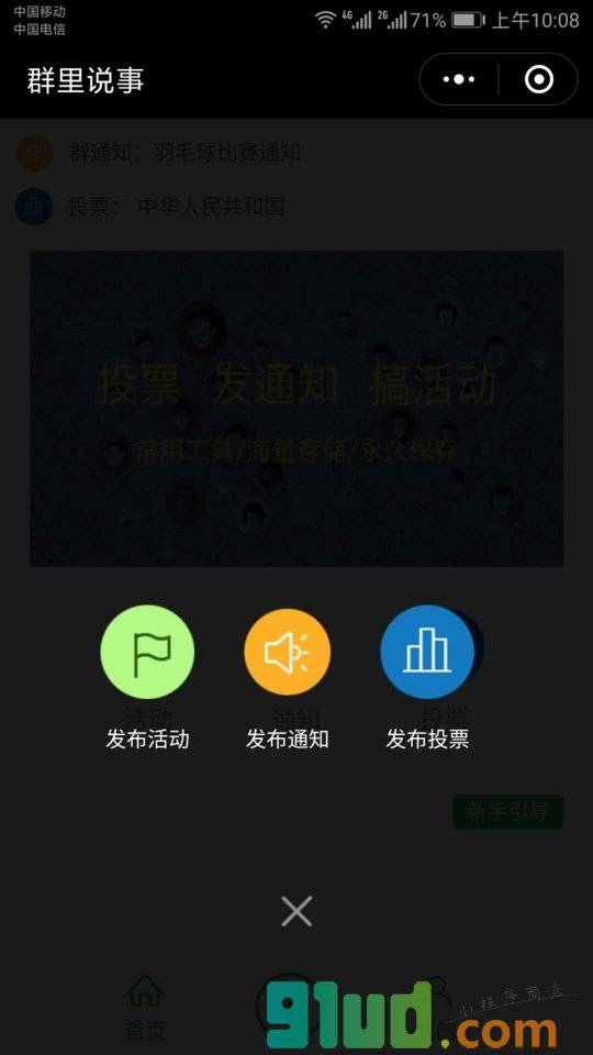 快速发布群通知、群投票和群活动到微信群中,可快速收集报名者信息、也可图文评价点赞群活动,可查阅群成员是否已阅读通知,也可匿名投票