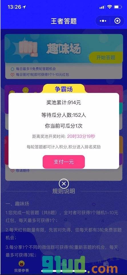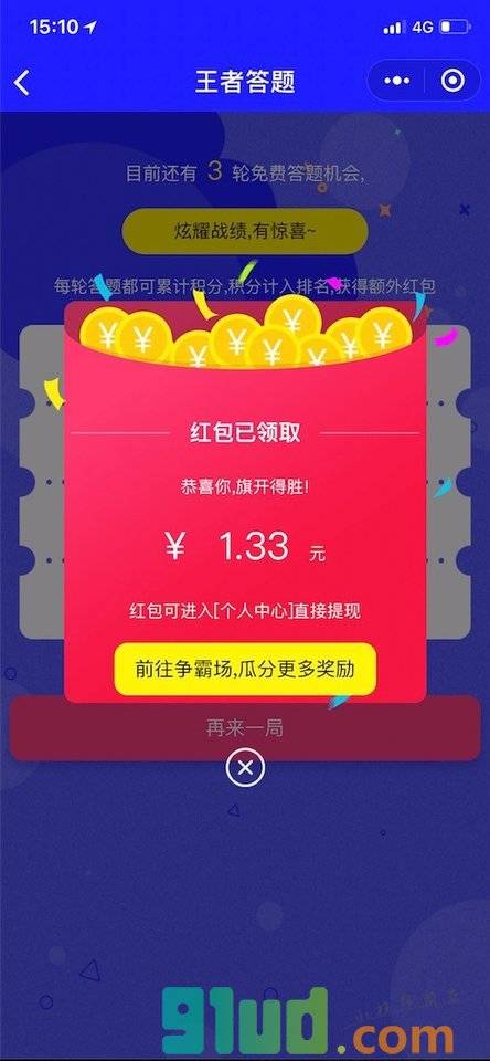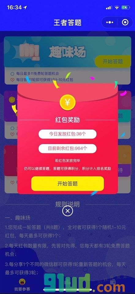 一款7X24小时在线随时答题的益智小程序,每天免费答题赢现金,千元大奖等你拿。