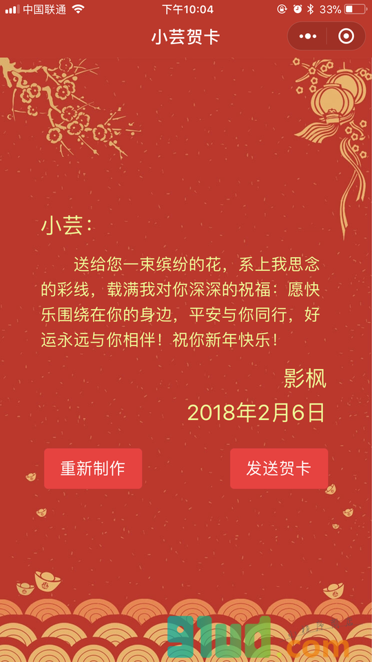 - 使用微信扫描页面上方二维码进入小芸贺卡