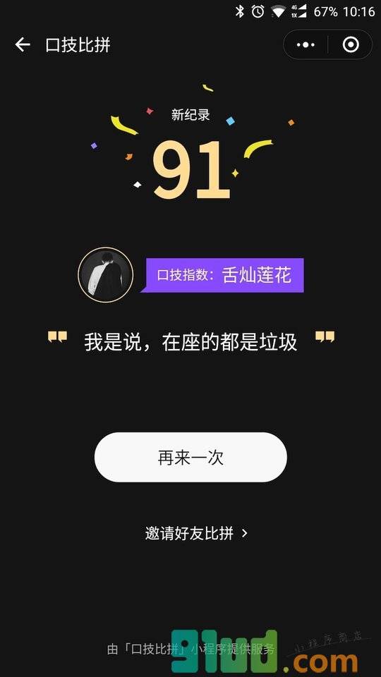 - 在微信中搜索“口技比拼”即可进入小程序