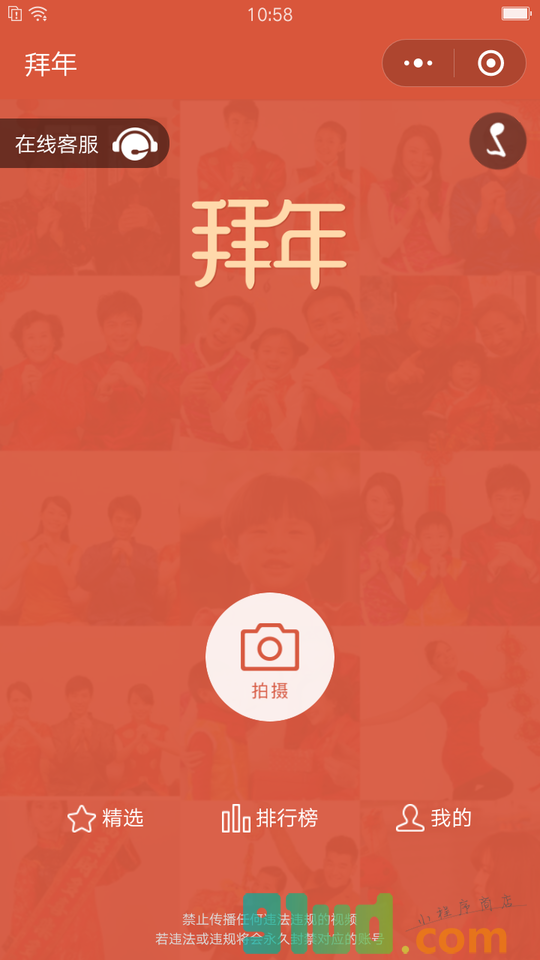 - 在微信中搜索“大家来拜年”即可进入小程序