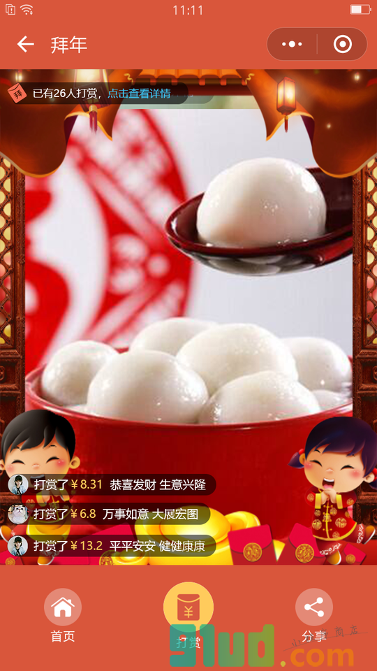 - 使用微信扫描页面上方二维码进入大家来拜年