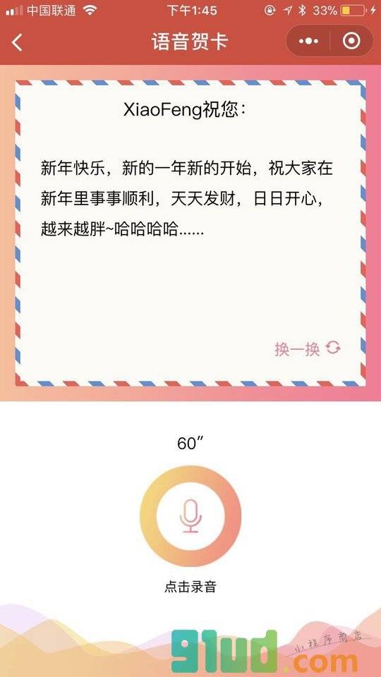- 使用微信扫描页面上方二维码进入贺卡心语