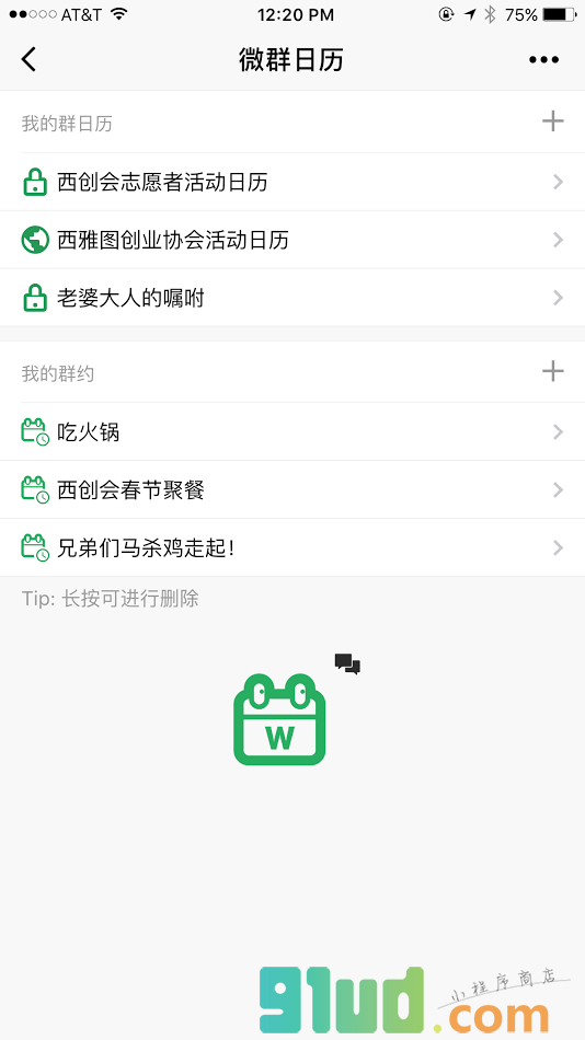 - 在微信中搜索“微群日历”即可进入小程序