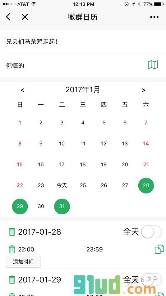 - 使用微信扫描页面上方二维码进入微群日历