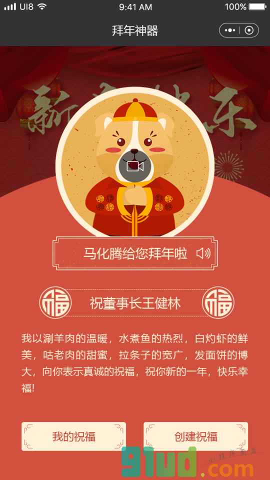 - 在微信中搜索“2018拜年祝福”即可进入小程序