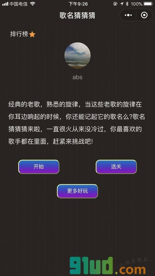 - 在微信中搜索“歌名猜猜乐”即可进入小程序