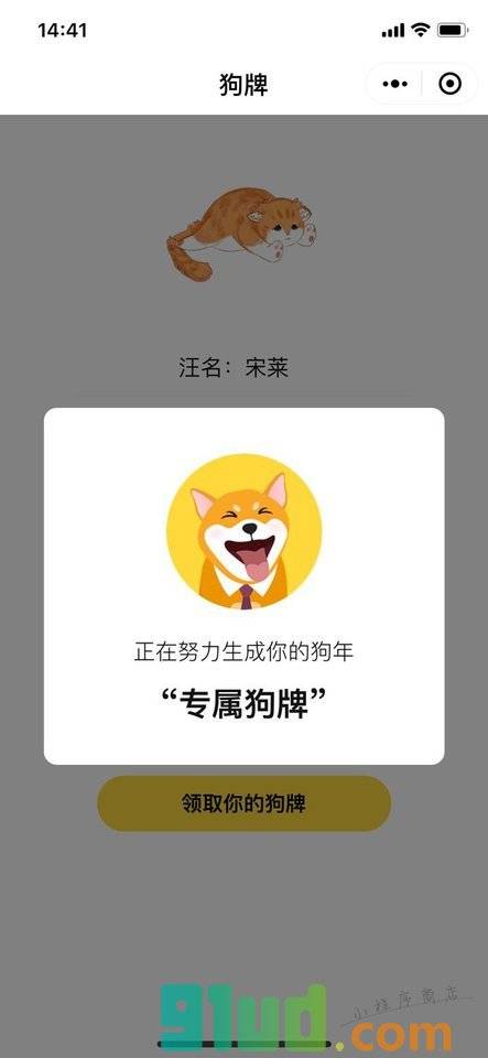 - 在微信中搜索“狗牌DogeCard”即可进入小程序