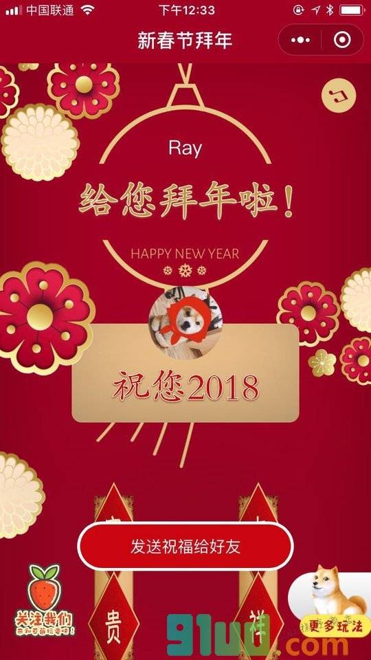 - 使用微信扫描页面上方二维码进入新春节拜年